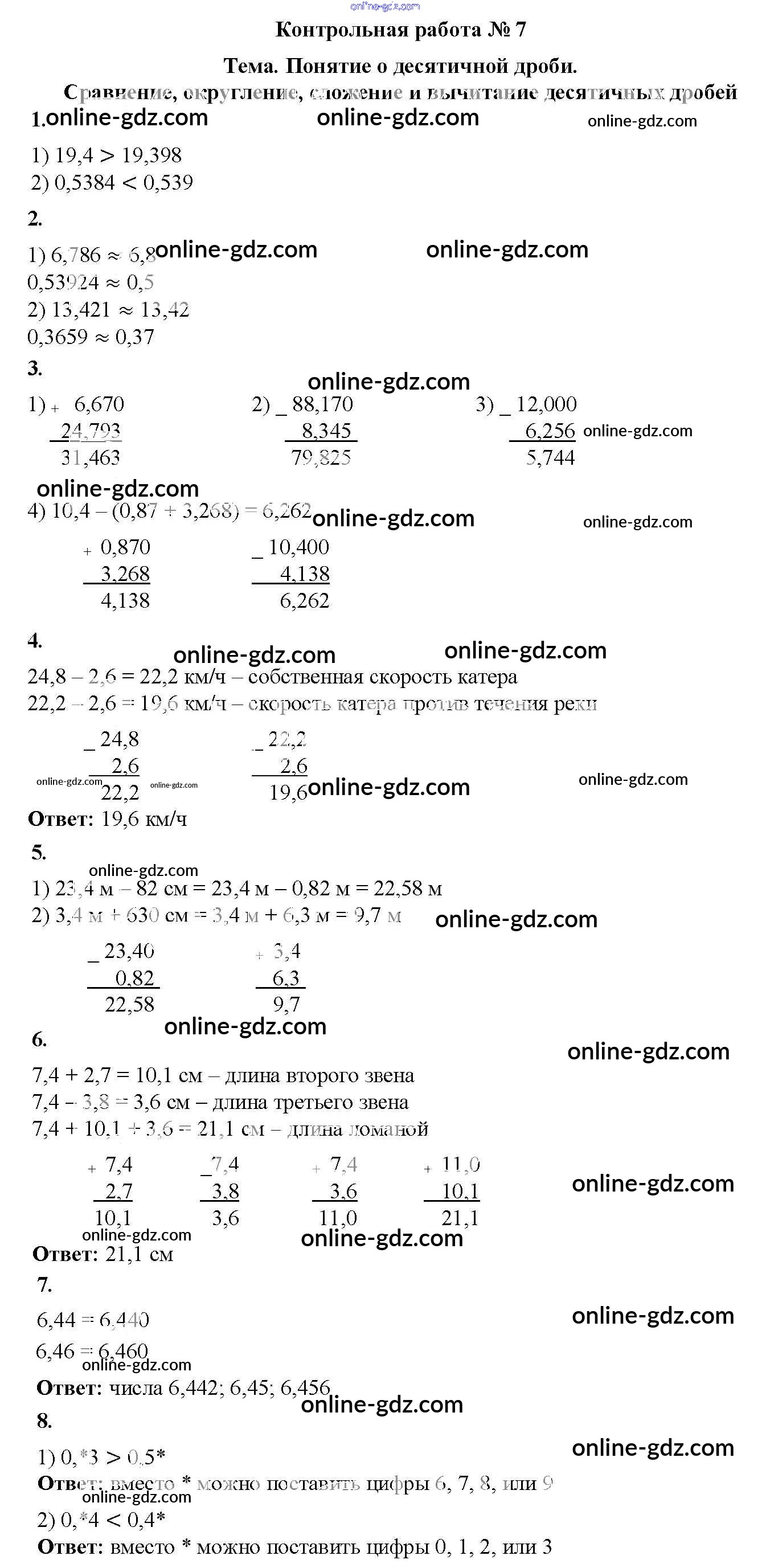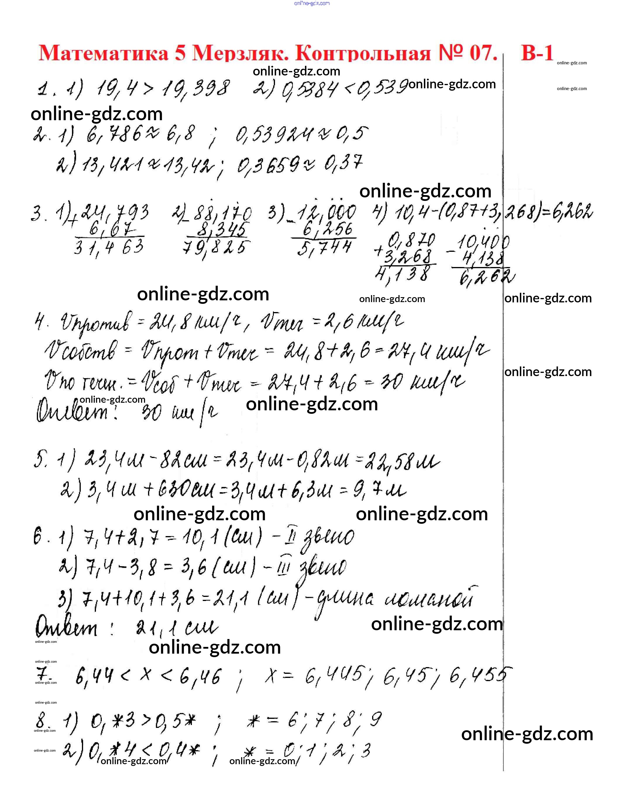 Готовые домашние задания по Математике за 5 класс Дидактические материалы Мерзляк, Полонский Алгоритм успеха 2017 - КР №7. Понятие о десятичной дроби. Сравнение, округление, сложение и вычитание Контрольные работы вариант 1
