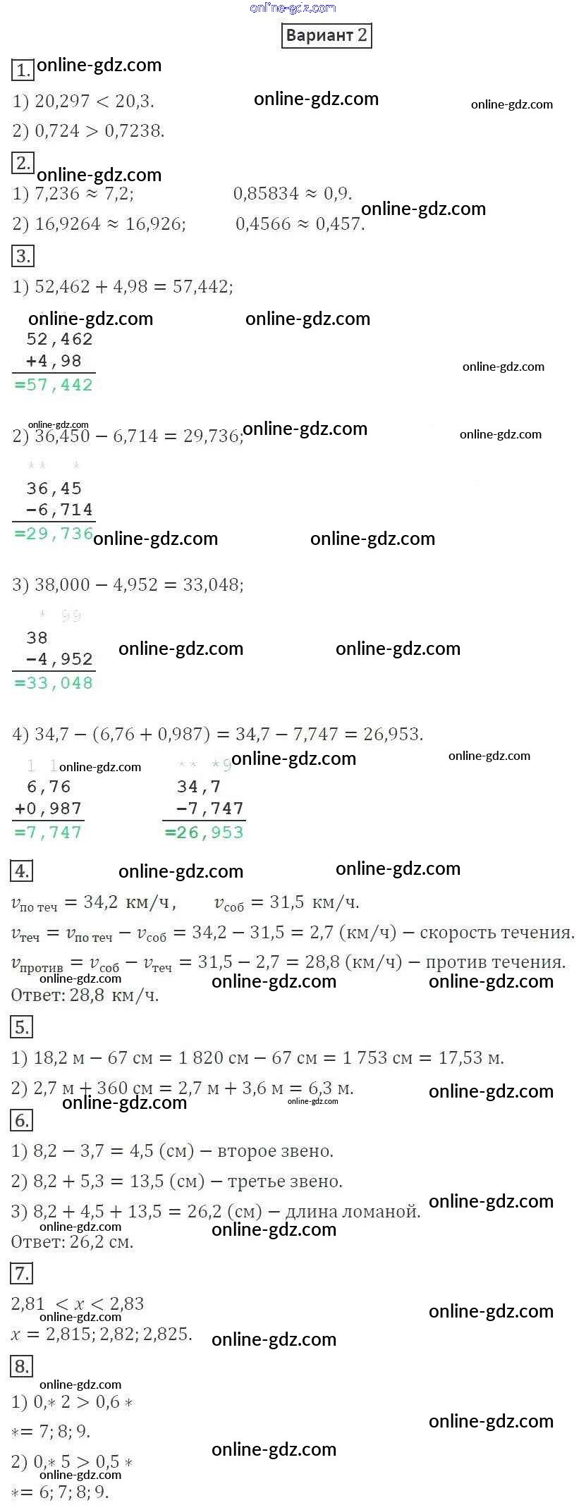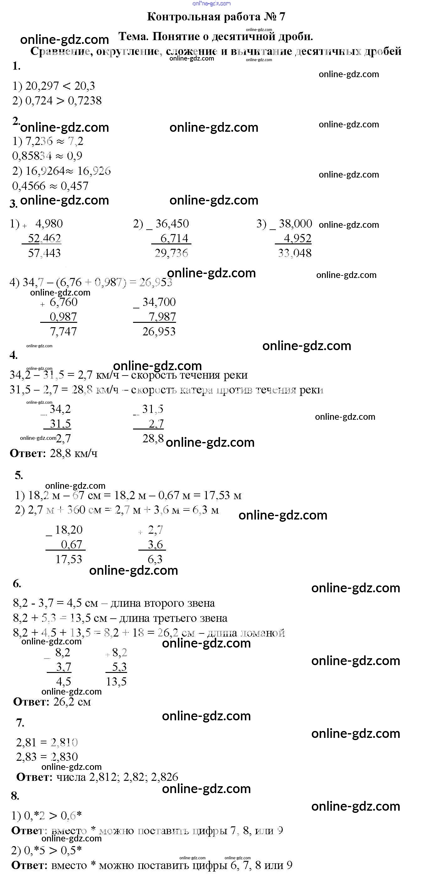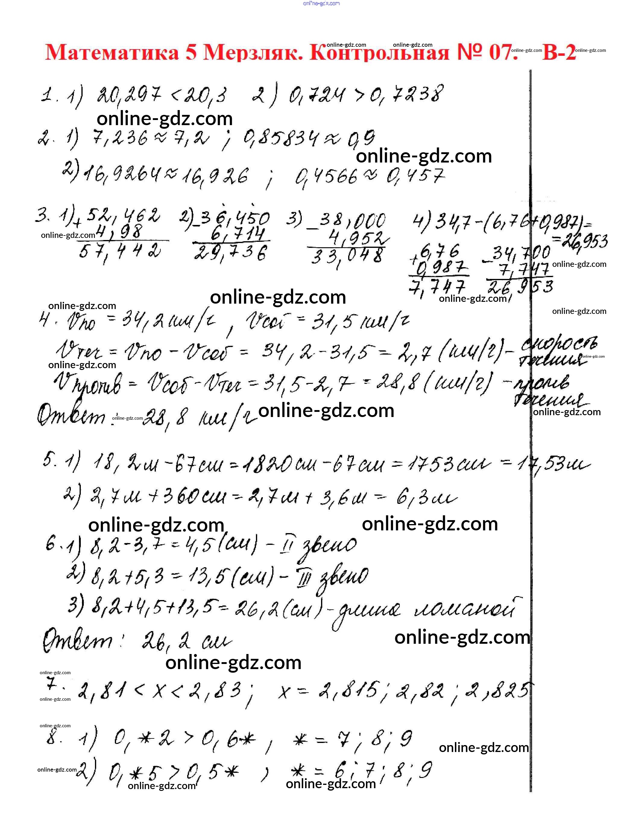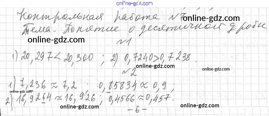 Готовые домашние задания по Математике за 5 класс Дидактические материалы Мерзляк, Полонский Алгоритм успеха 2017 - КР №7. Понятие о десятичной дроби. Сравнение, округление, сложение и вычитание Контрольные работы вариант 2