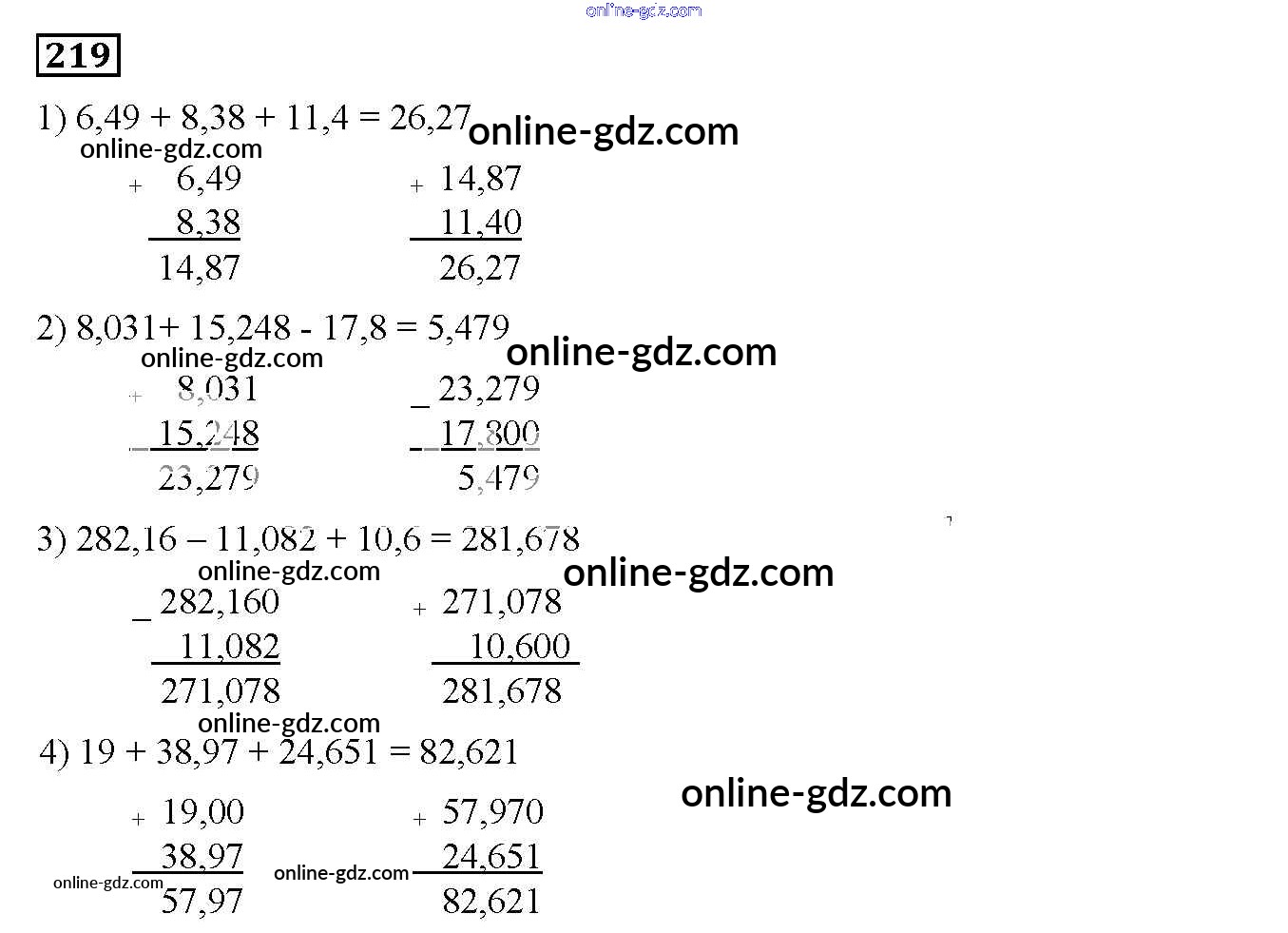Готовые домашние задания по Математике за 5 класс Дидактические материалы Мерзляк, Полонский Алгоритм успеха 2017 - Вариант 3 Упражнения 219