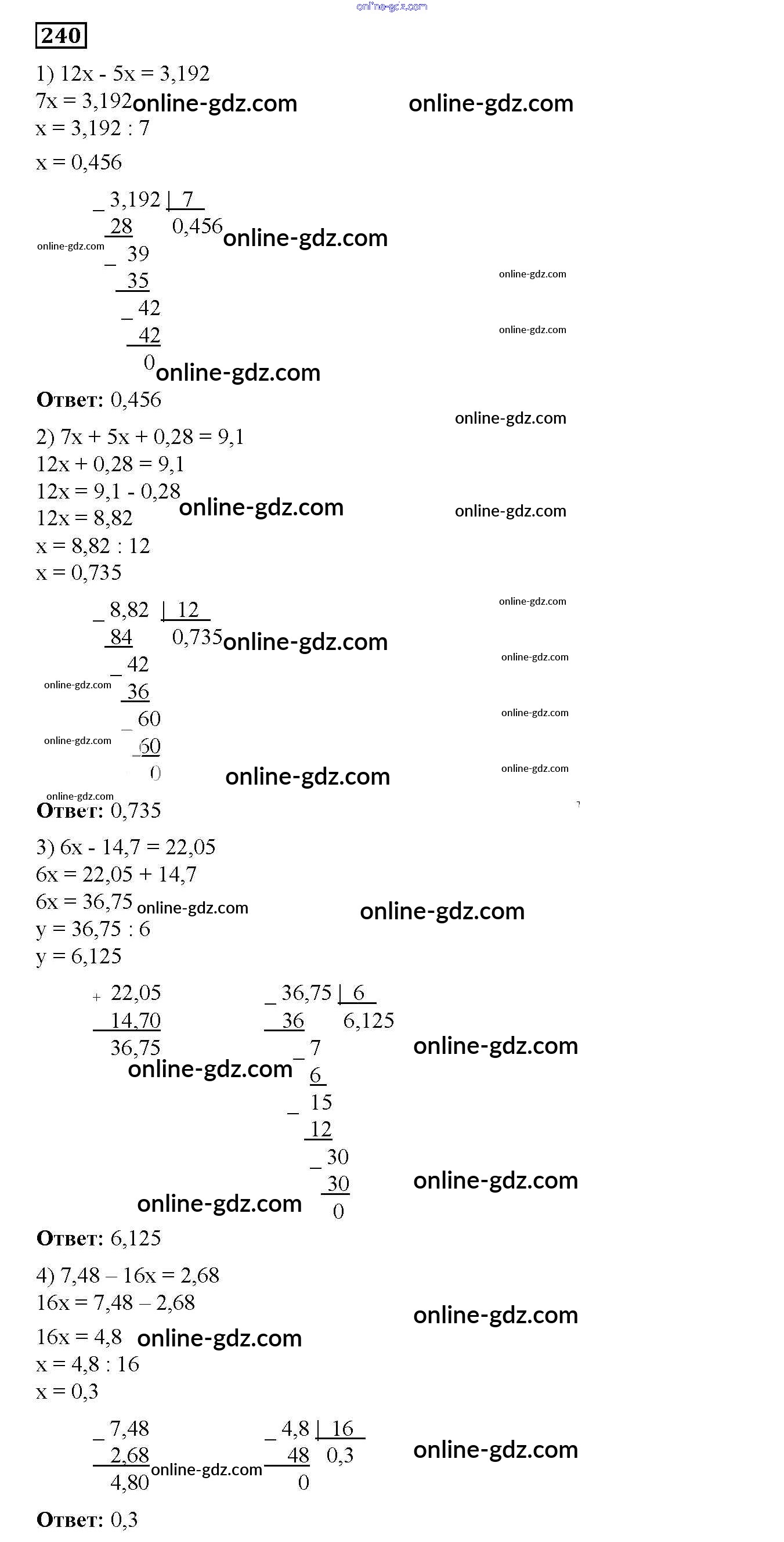 Готовые домашние задания по Математике за 5 класс Дидактические материалы Мерзляк, Полонский Алгоритм успеха 2017 - Вариант 4 Упражнения 240