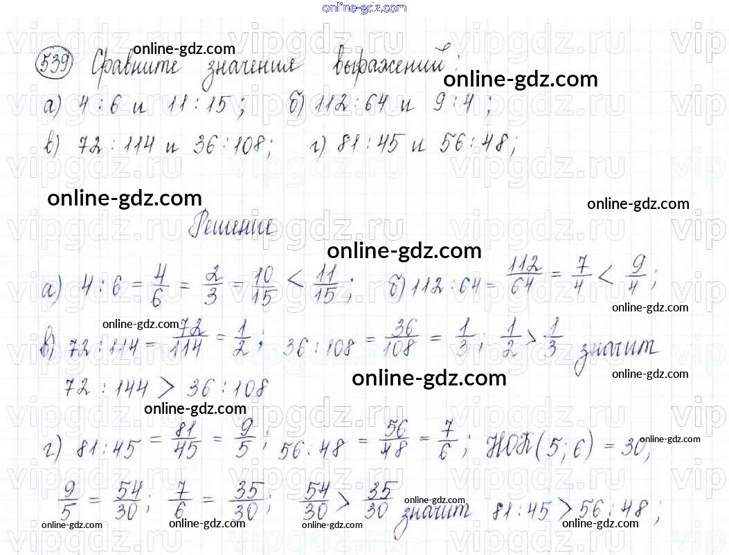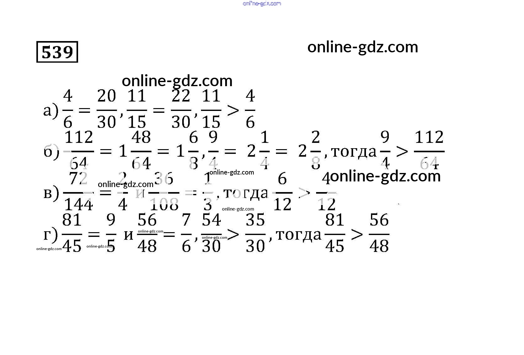 Готовые домашние задания по Математике за 5 класс Учебник Бунимович, Дорофеев Сферы 2014 - Упражнения 539
