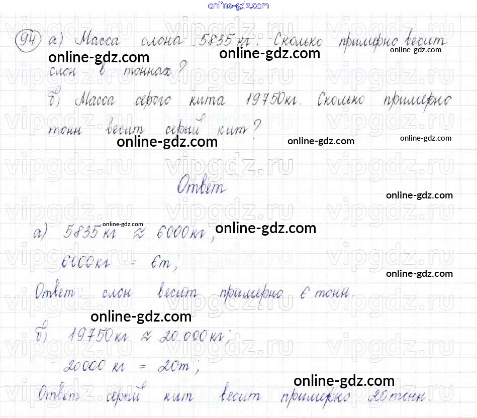 Готовые домашние задания по Математике за 5 класс Учебник Бунимович, Дорофеев Сферы 2014 - Упражнения 94