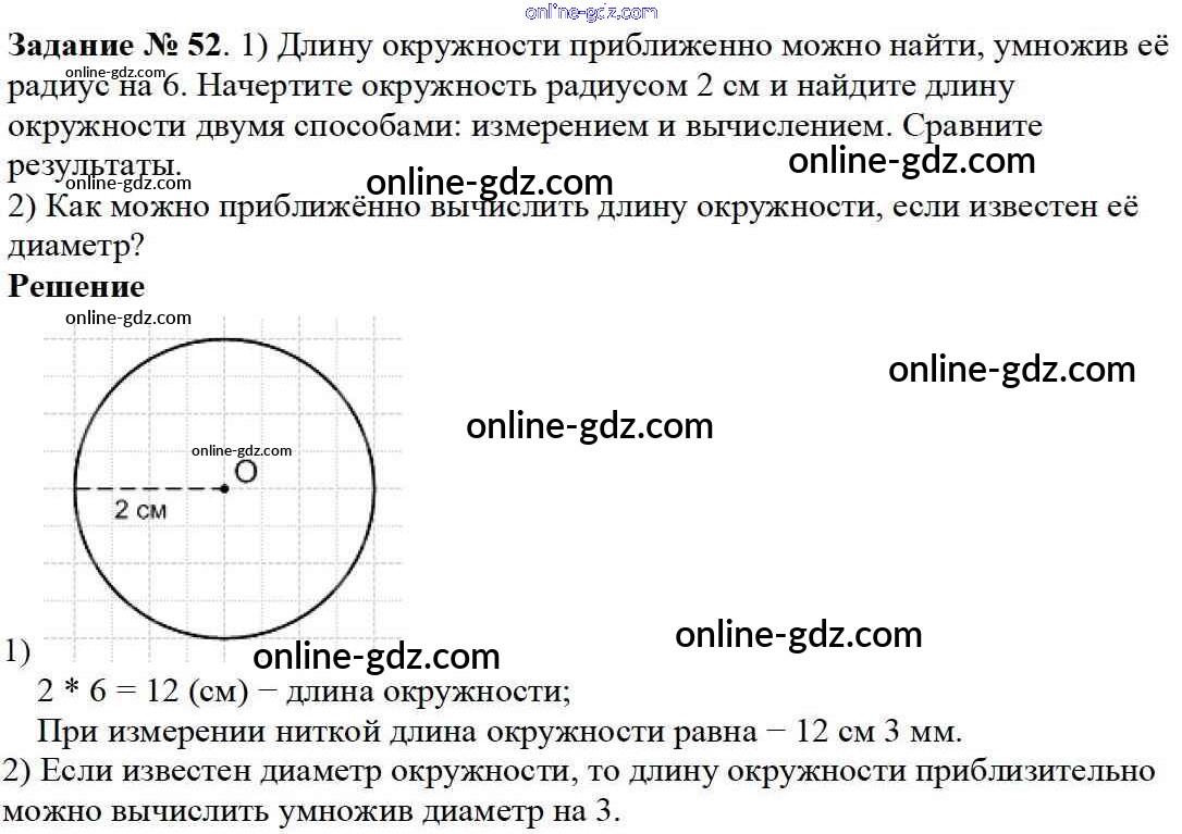 Готовые домашние задания по Математике за 5 класс Учебник Дорофеев, Шарыгин 2015 - 1.4. Окружность Глава 1. Линии 52
