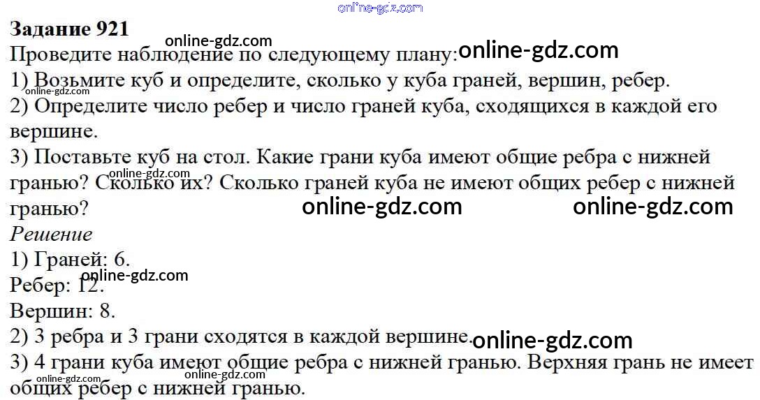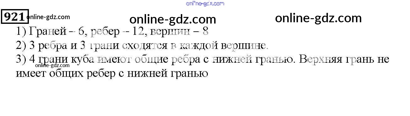 Готовые домашние задания по Математике за 5 класс Учебник Дорофеев, Шарыгин 2015 - 10.1. Геометрические тела и их изображение Глава 10. Многогранники 921