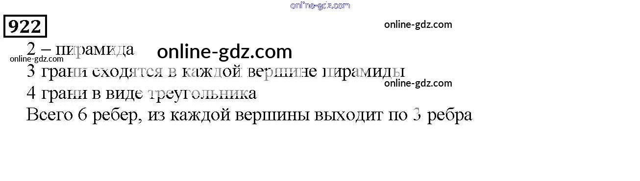 Готовые домашние задания по Математике за 5 класс Учебник Дорофеев, Шарыгин 2015 - 10.1. Геометрические тела и их изображение Глава 10. Многогранники 922