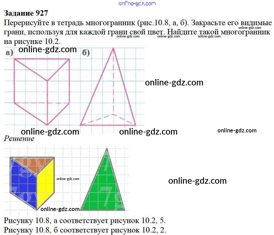 Готовые домашние задания по Математике за 5 класс Учебник Дорофеев, Шарыгин 2015 - 10.1. Геометрические тела и их изображение Глава 10. Многогранники 927