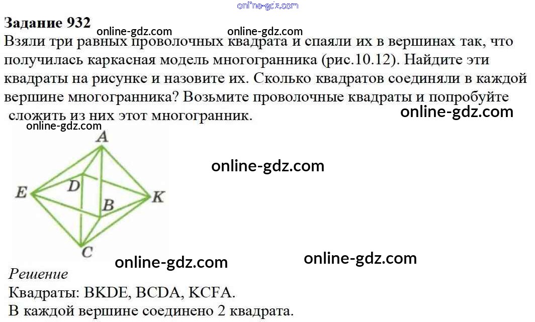 Готовые домашние задания по Математике за 5 класс Учебник Дорофеев, Шарыгин 2015 - 10.1. Геометрические тела и их изображение Глава 10. Многогранники 932