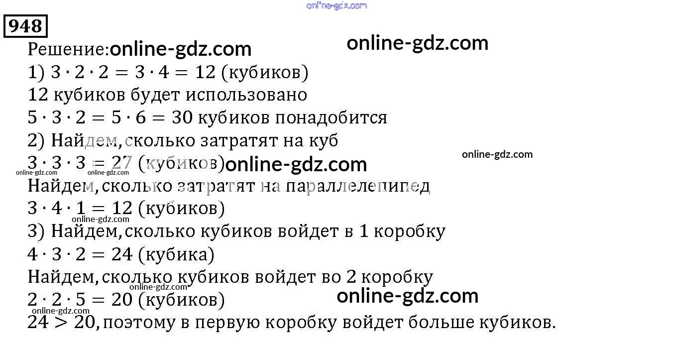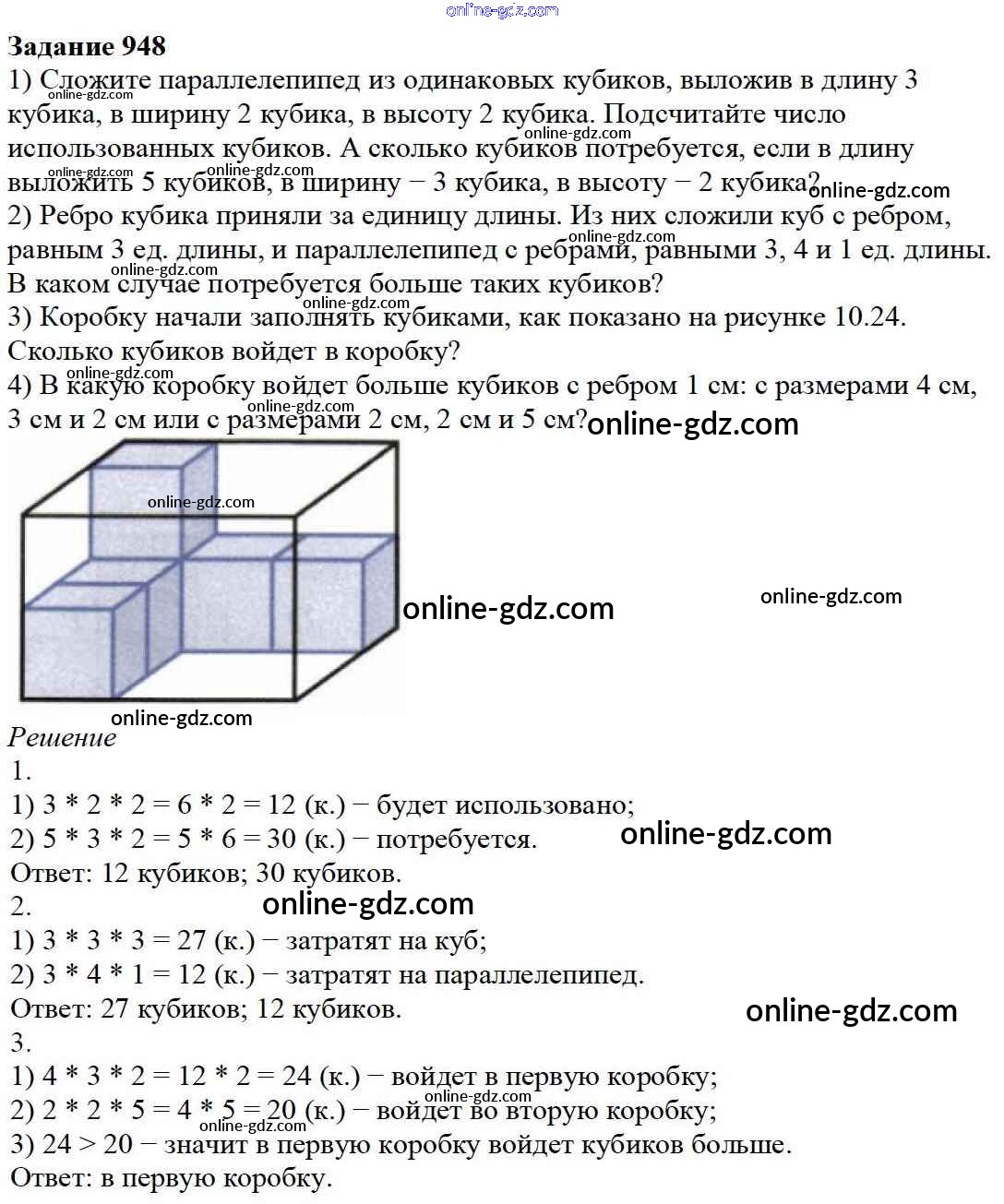 Готовые домашние задания по Математике за 5 класс Учебник Дорофеев, Шарыгин 2015 - 10.2. Параллелепипед Глава 10. Многогранники 948