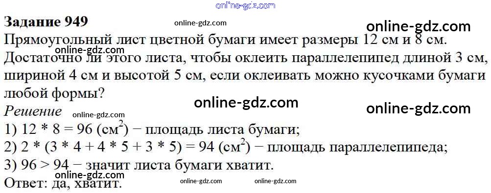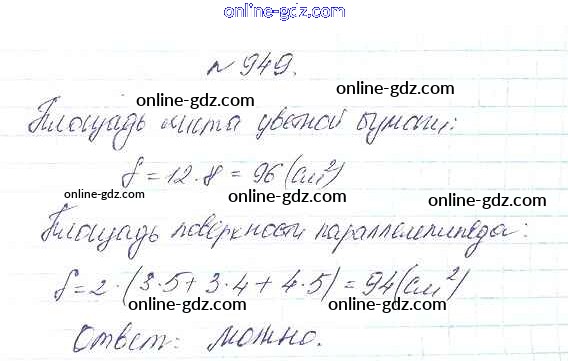 Готовые домашние задания по Математике за 5 класс Учебник Дорофеев, Шарыгин 2015 - 10.2. Параллелепипед Глава 10. Многогранники 949