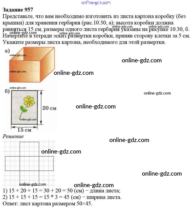 Готовые домашние задания по Математике за 5 класс Учебник Дорофеев, Шарыгин 2015 - 10.2. Параллелепипед Глава 10. Многогранники 957