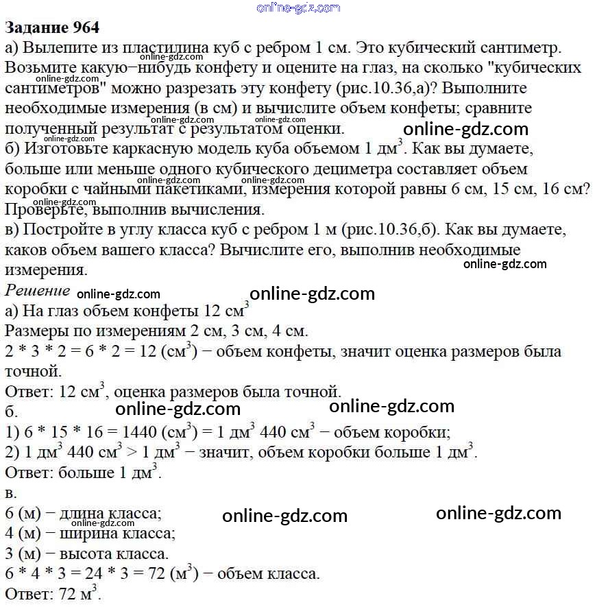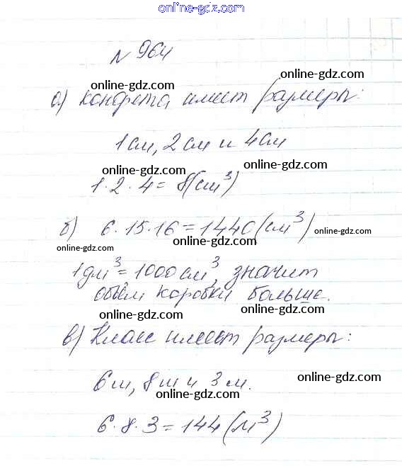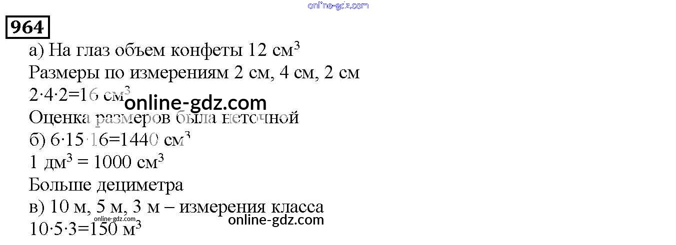 Готовые домашние задания по Математике за 5 класс Учебник Дорофеев, Шарыгин 2015 - 10.3. Объем параллелепипеда Глава 10. Многогранники 964