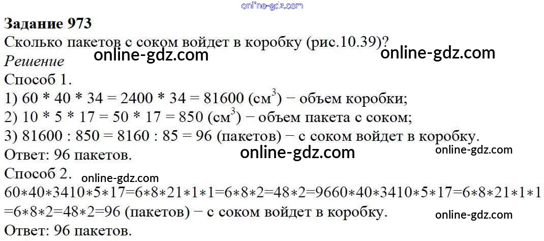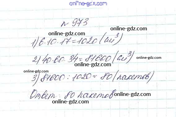 Готовые домашние задания по Математике за 5 класс Учебник Дорофеев, Шарыгин 2015 - 10.3. Объем параллелепипеда Глава 10. Многогранники 973