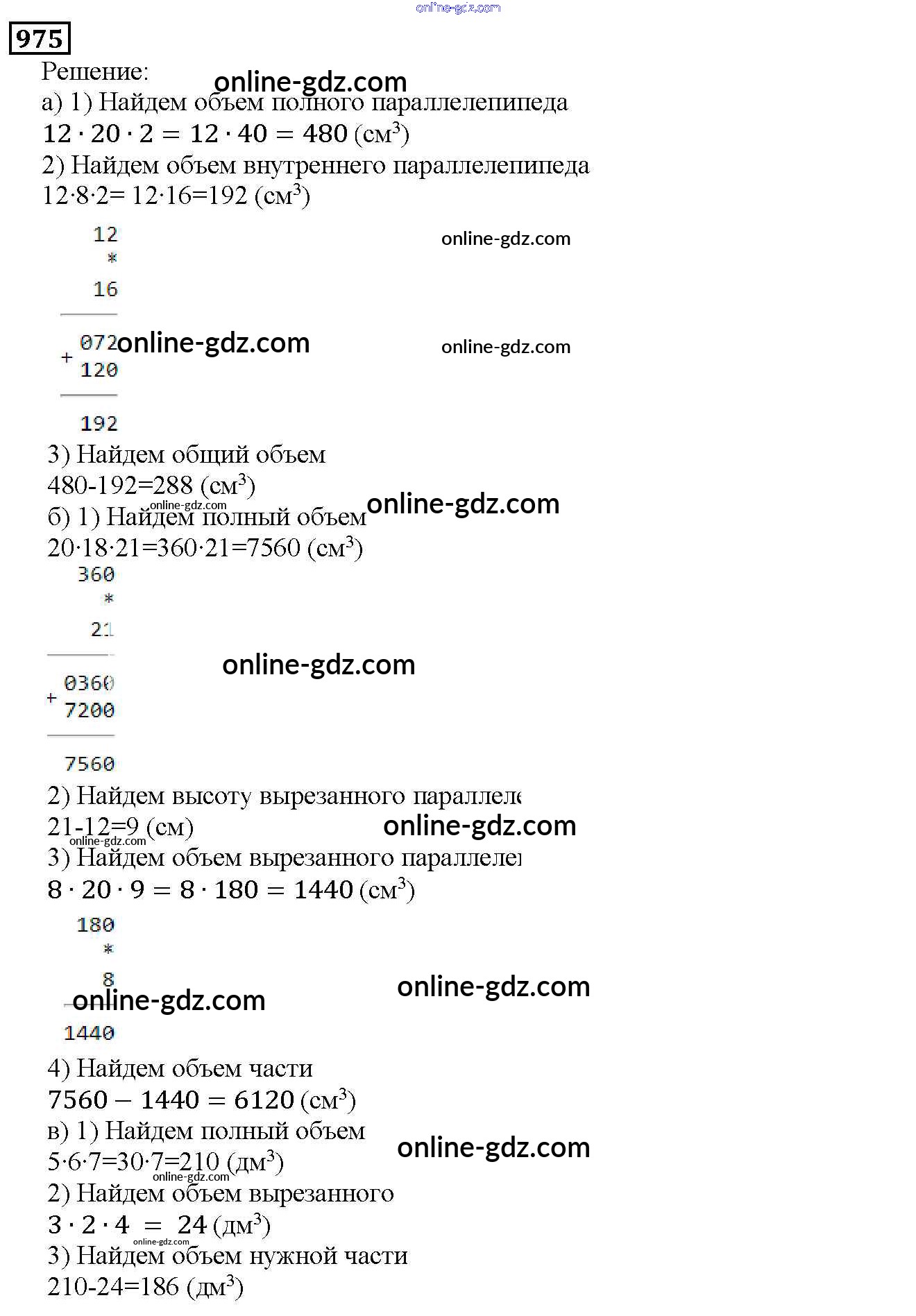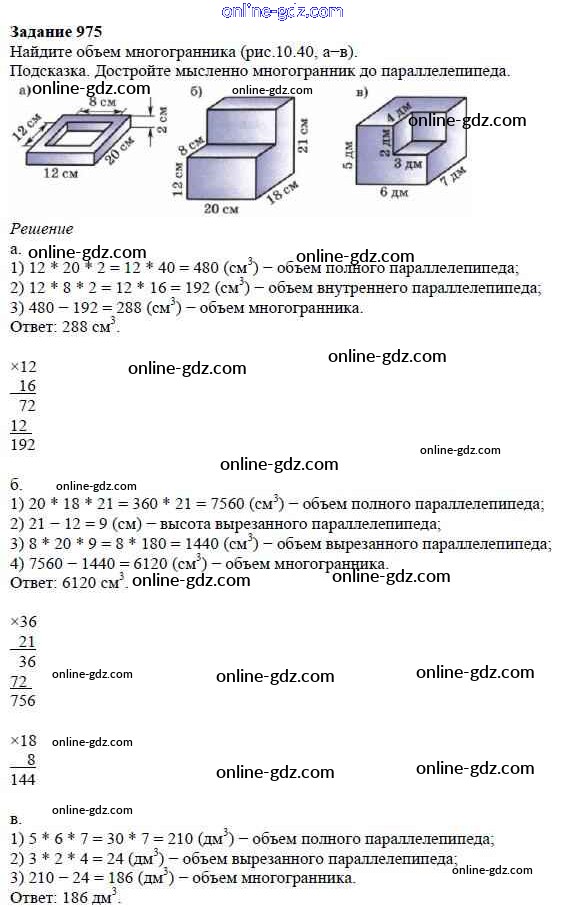 Готовые домашние задания по Математике за 5 класс Учебник Дорофеев, Шарыгин 2015 - 10.3. Объем параллелепипеда Глава 10. Многогранники 975