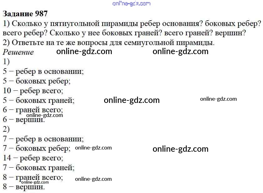 Готовые домашние задания по Математике за 5 класс Учебник Дорофеев, Шарыгин 2015 - 10.4. Пирамида Глава 10. Многогранники 987