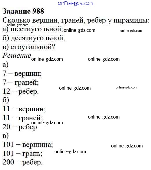 Готовые домашние задания по Математике за 5 класс Учебник Дорофеев, Шарыгин 2015 - 10.4. Пирамида Глава 10. Многогранники 988