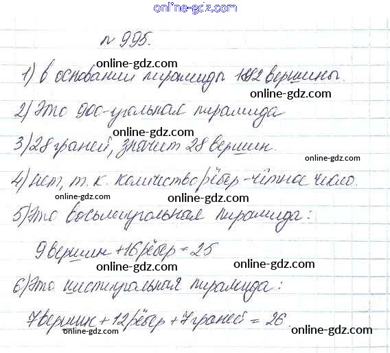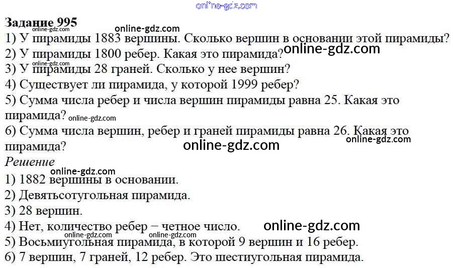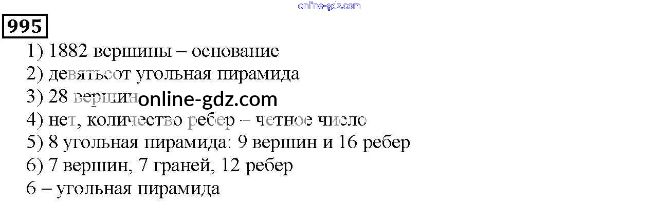 Готовые домашние задания по Математике за 5 класс Учебник Дорофеев, Шарыгин 2015 - 10.4. Пирамида Глава 10. Многогранники 995