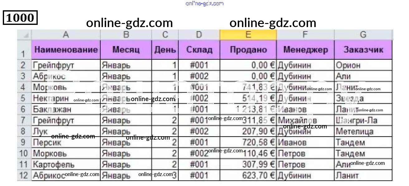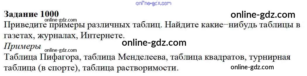 Готовые домашние задания по Математике за 5 класс Учебник Дорофеев, Шарыгин 2015 - 11.1. Чтение и составление таблиц Глава 11. Таблицы и диаграммы 1000