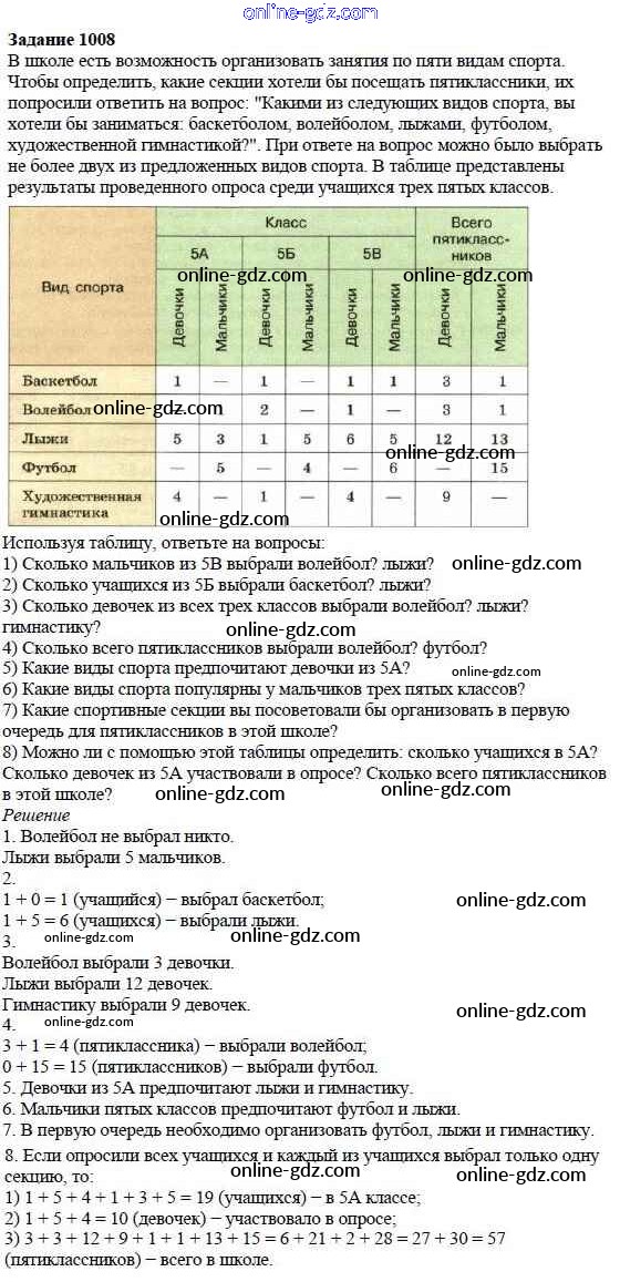 Готовые домашние задания по Математике за 5 класс Учебник Дорофеев, Шарыгин 2015 - 11.1. Чтение и составление таблиц Глава 11. Таблицы и диаграммы 1008