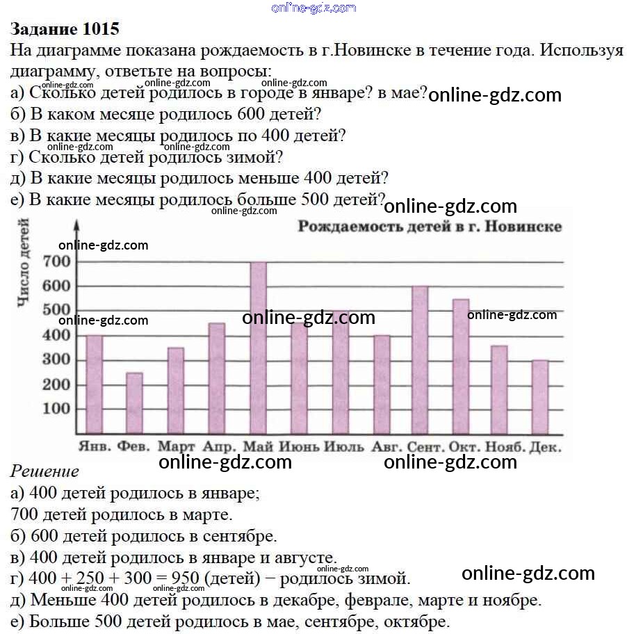 Готовые домашние задания по Математике за 5 класс Учебник Дорофеев, Шарыгин 2015 - 11.2. Диаграммы Глава 11. Таблицы и диаграммы 1015