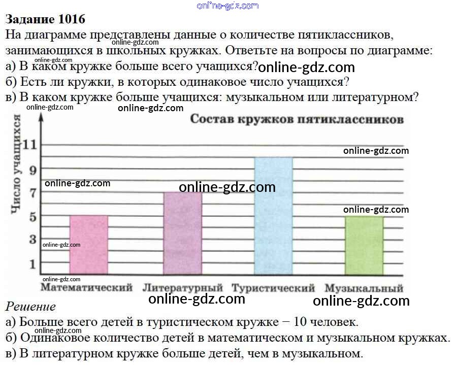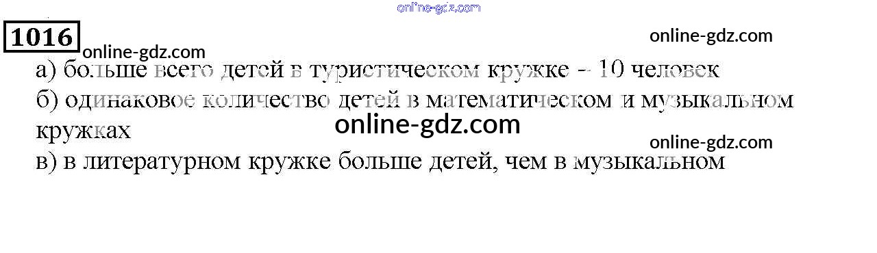 Готовые домашние задания по Математике за 5 класс Учебник Дорофеев, Шарыгин 2015 - 11.2. Диаграммы Глава 11. Таблицы и диаграммы 1016
