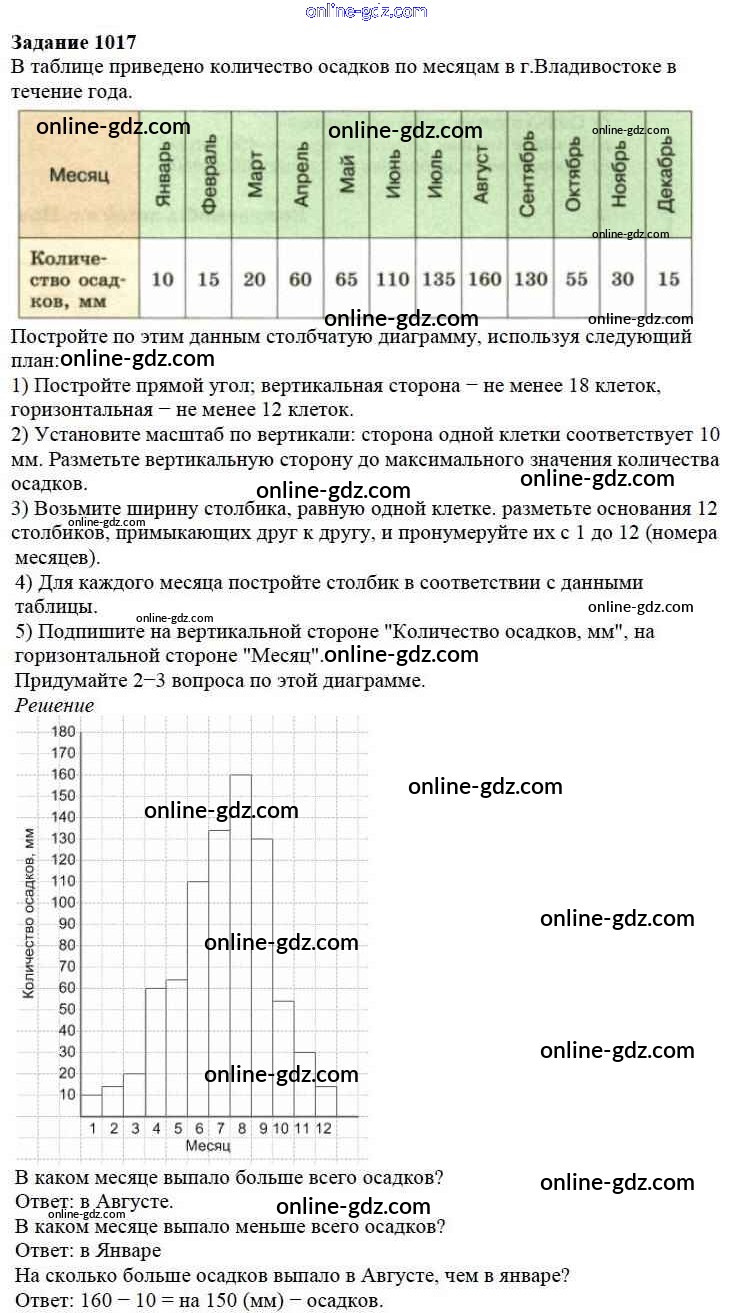 Готовые домашние задания по Математике за 5 класс Учебник Дорофеев, Шарыгин 2015 - 11.2. Диаграммы Глава 11. Таблицы и диаграммы 1017