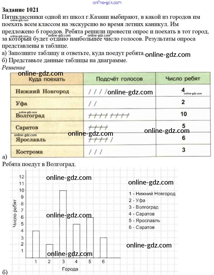 Готовые домашние задания по Математике за 5 класс Учебник Дорофеев, Шарыгин 2015 - 11.3. Опрос общественного мнения Глава 11. Таблицы и диаграммы 1021