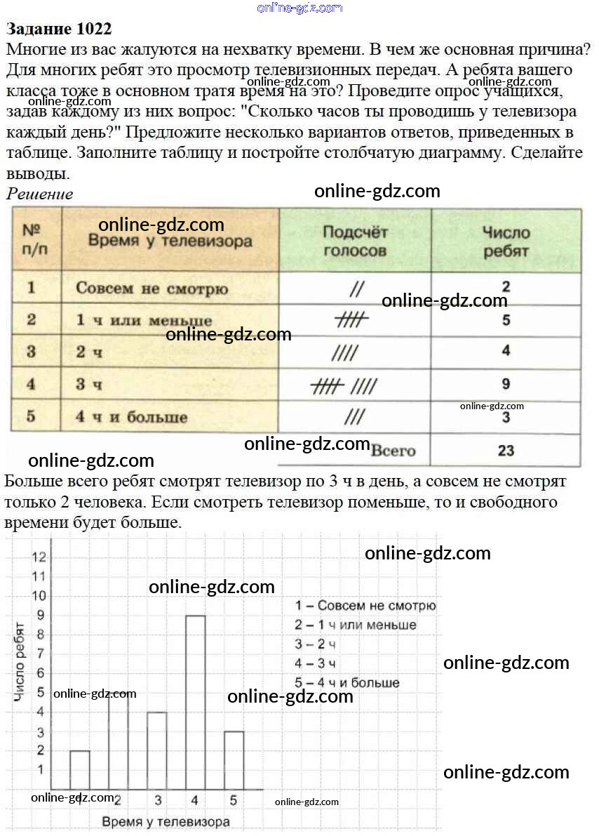 Готовые домашние задания по Математике за 5 класс Учебник Дорофеев, Шарыгин 2015 - 11.3. Опрос общественного мнения Глава 11. Таблицы и диаграммы 1022