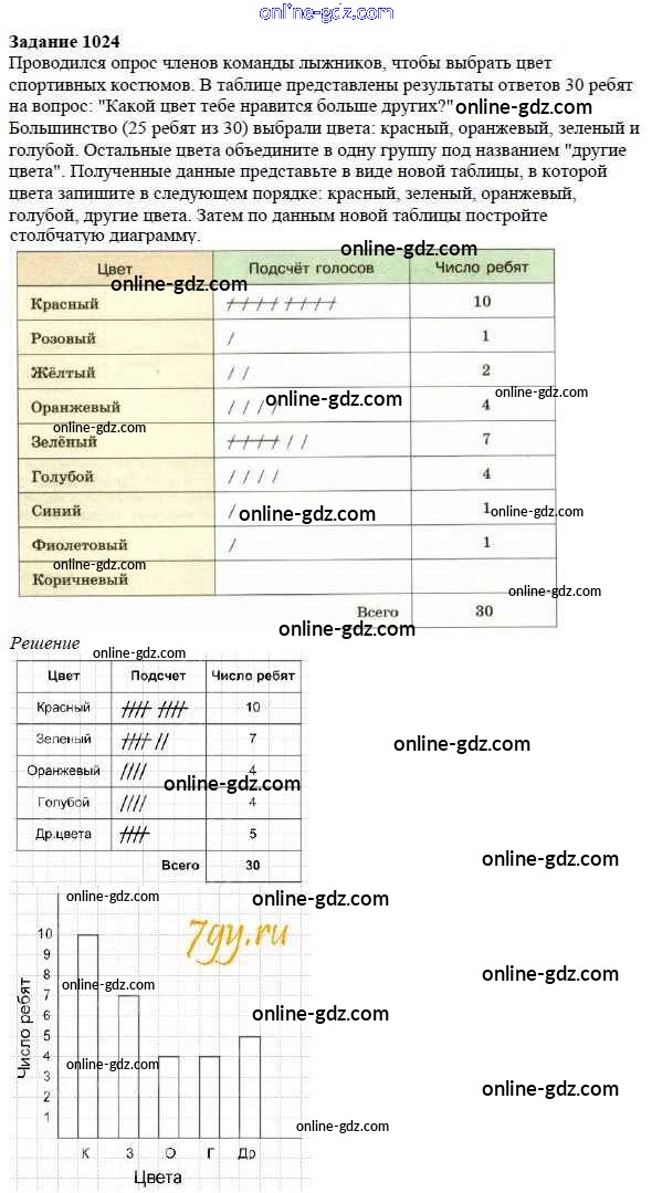 Готовые домашние задания по Математике за 5 класс Учебник Дорофеев, Шарыгин 2015 - 11.3. Опрос общественного мнения Глава 11. Таблицы и диаграммы 1024