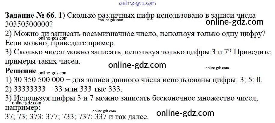 Готовые домашние задания по Математике за 5 класс Учебник Дорофеев, Шарыгин 2015 - 2.1. Как записывают и читают натуральные числа Глава 2. Натуральные числа 66