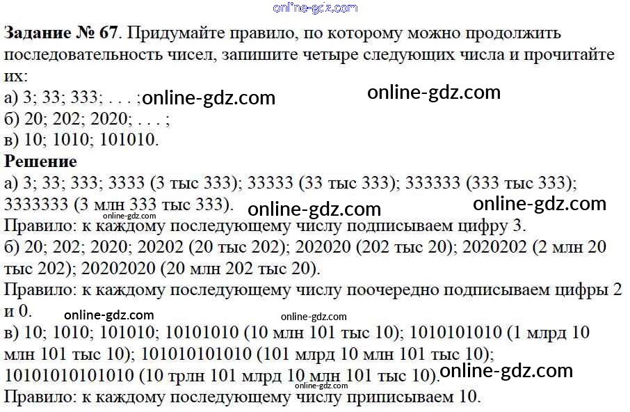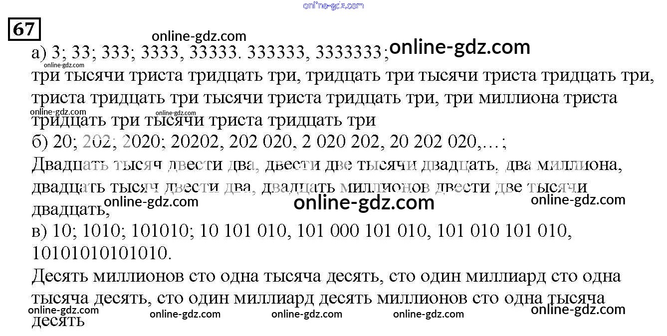 Готовые домашние задания по Математике за 5 класс Учебник Дорофеев, Шарыгин 2015 - 2.1. Как записывают и читают натуральные числа Глава 2. Натуральные числа 67