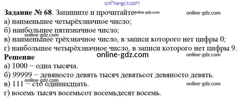 Готовые домашние задания по Математике за 5 класс Учебник Дорофеев, Шарыгин 2015 - 2.1. Как записывают и читают натуральные числа Глава 2. Натуральные числа 68