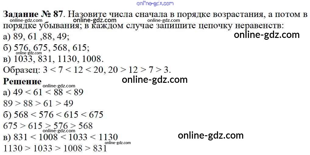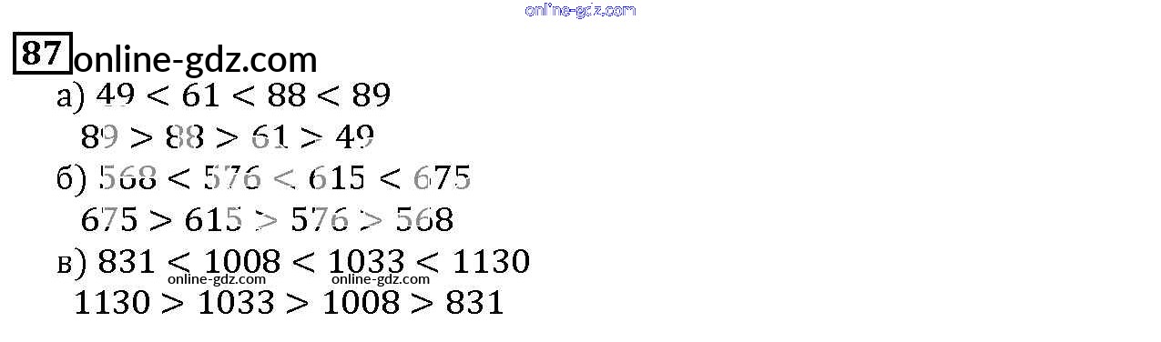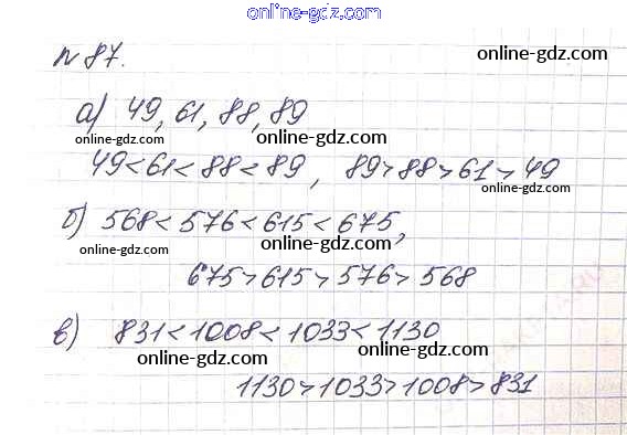 Готовые домашние задания по Математике за 5 класс Учебник Дорофеев, Шарыгин 2015 - 2.2. Натуральный ряд. Сравнение натуральных чисел Глава 2. Натуральные числа 87
