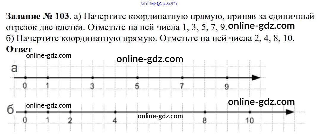 Готовые домашние задания по Математике за 5 класс Учебник Дорофеев, Шарыгин 2015 - 2.3. Числа и точки на прямой Глава 2. Натуральные числа 103
