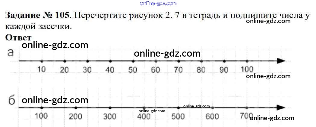 Готовые домашние задания по Математике за 5 класс Учебник Дорофеев, Шарыгин 2015 - 2.3. Числа и точки на прямой Глава 2. Натуральные числа 105