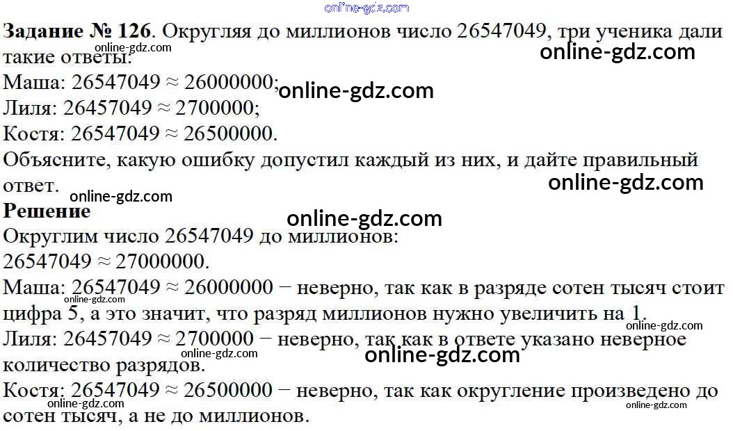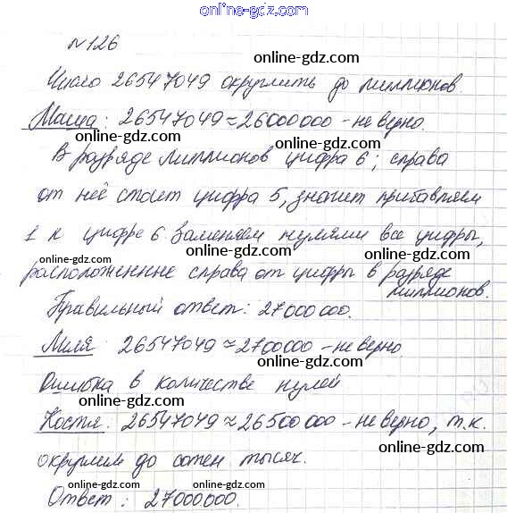 Готовые домашние задания по Математике за 5 класс Учебник Дорофеев, Шарыгин 2015 - 2.4. Округление натуральных чисел Глава 2. Натуральные числа 126