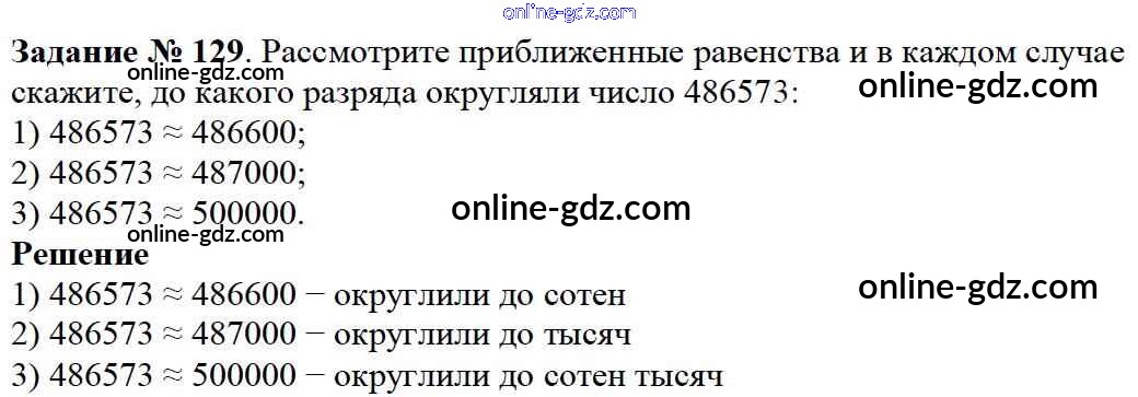 Готовые домашние задания по Математике за 5 класс Учебник Дорофеев, Шарыгин 2015 - 2.4. Округление натуральных чисел Глава 2. Натуральные числа 129