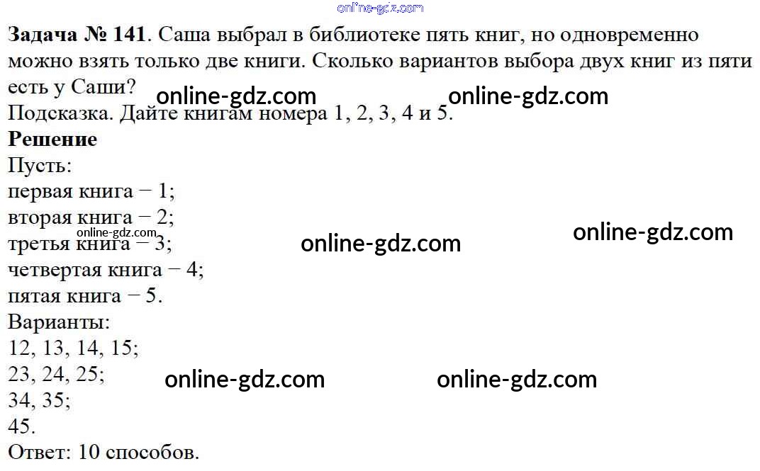 Готовые домашние задания по Математике за 5 класс Учебник Дорофеев, Шарыгин 2015 - 2.5. Решение комбинаторных задач Глава 2. Натуральные числа 141