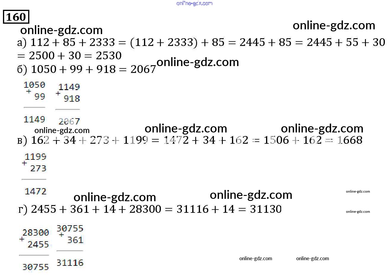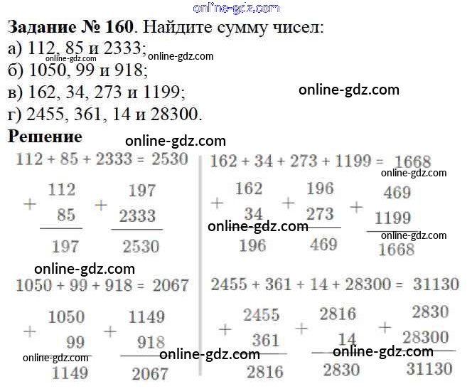 Готовые домашние задания по Математике за 5 класс Учебник Дорофеев, Шарыгин 2015 - 3.1. Сложение и вычитание Глава 3. Действия с натуральными числами 160