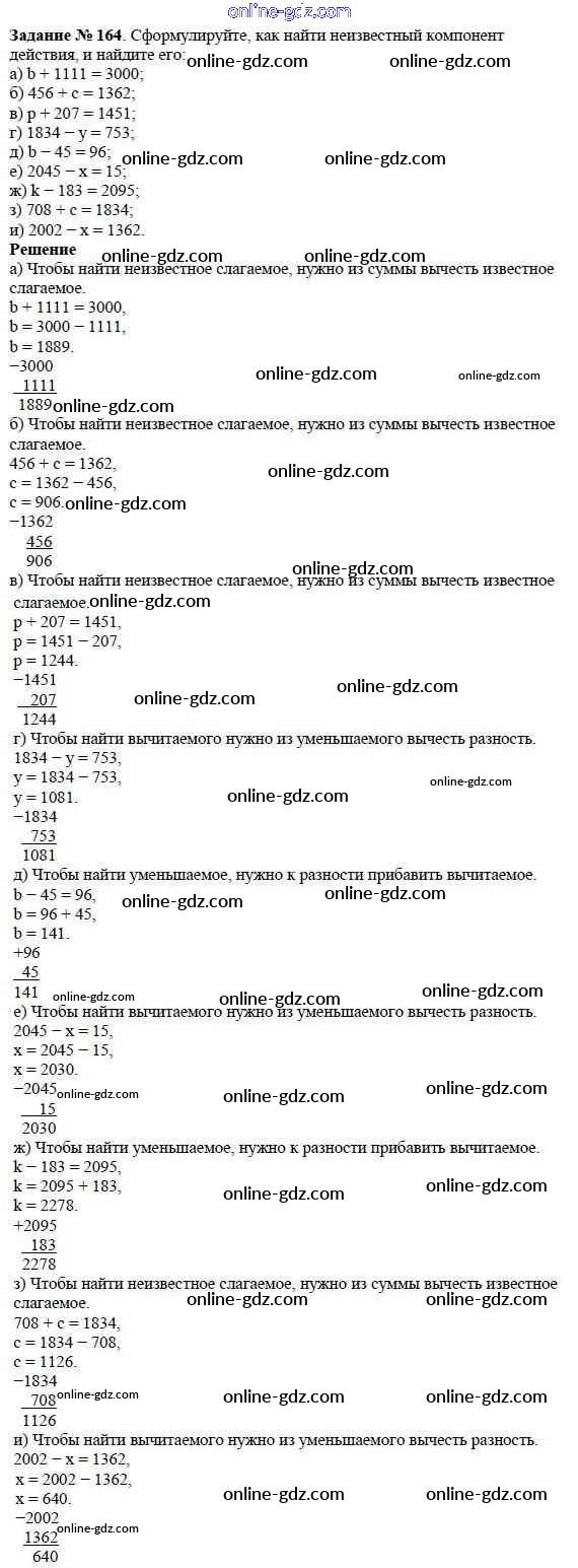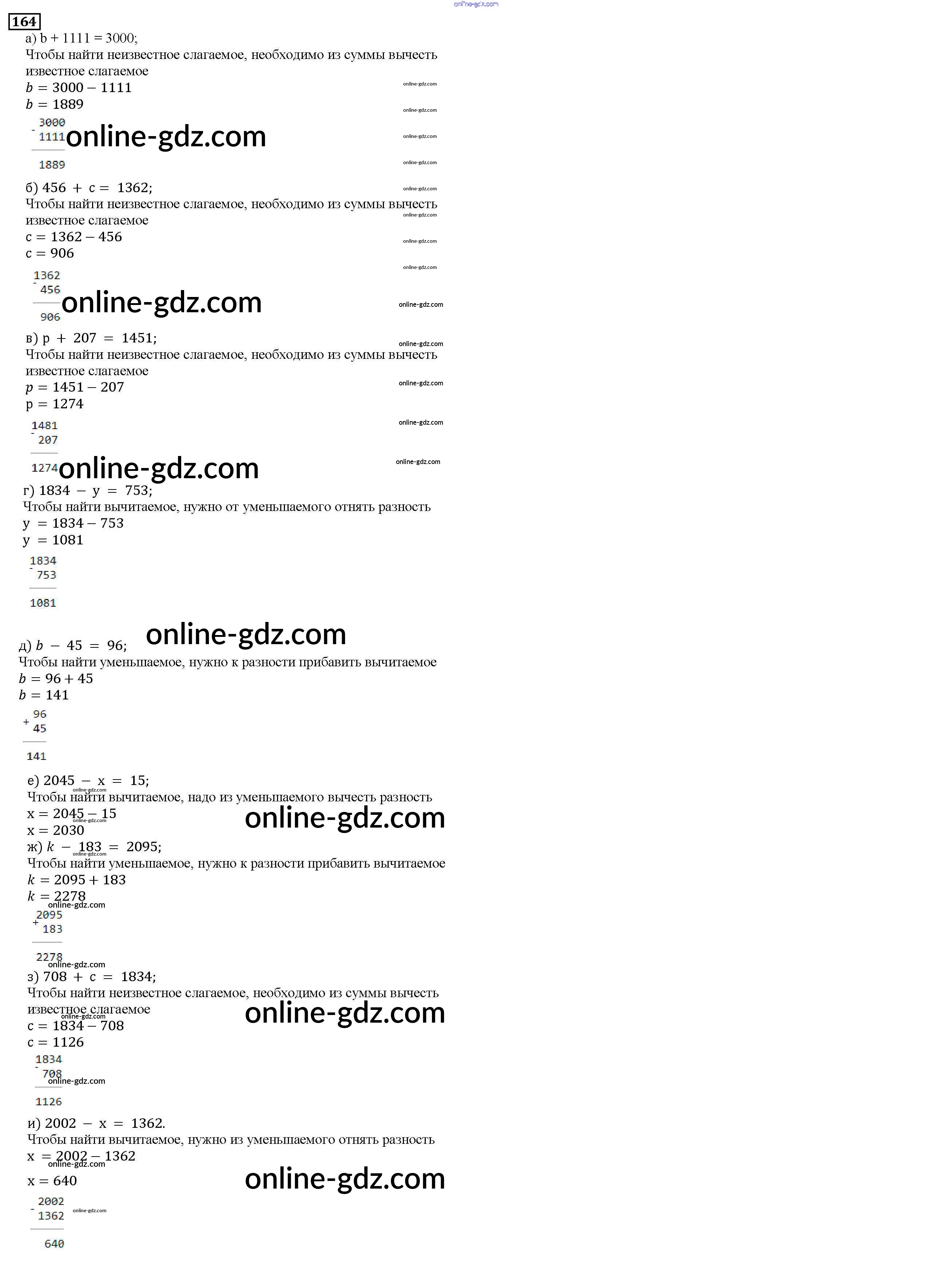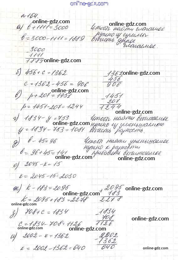 Готовые домашние задания по Математике за 5 класс Учебник Дорофеев, Шарыгин 2015 - 3.1. Сложение и вычитание Глава 3. Действия с натуральными числами 164