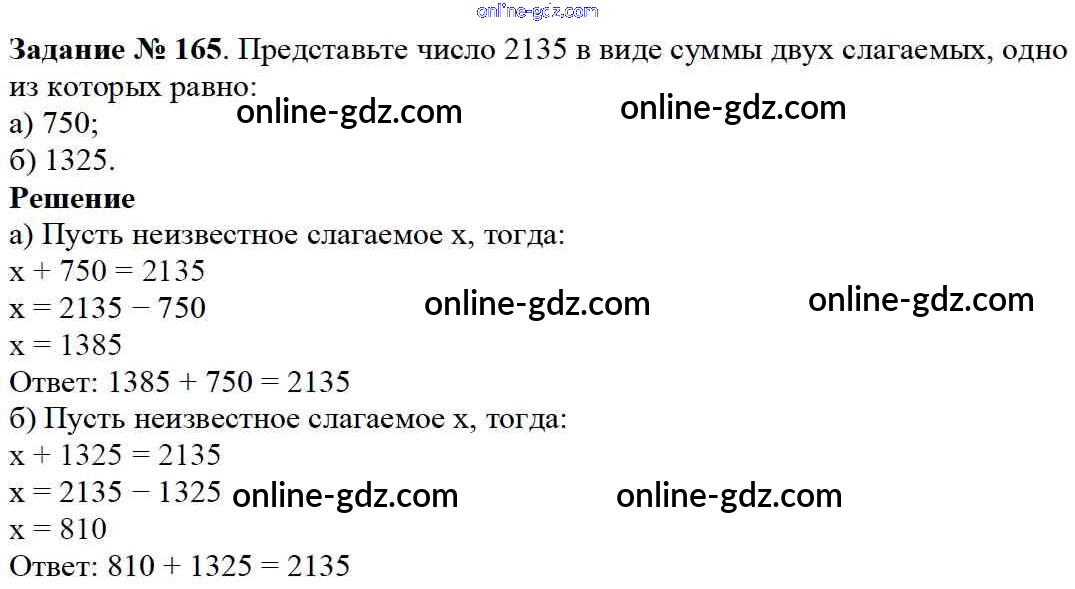 Готовые домашние задания по Математике за 5 класс Учебник Дорофеев, Шарыгин 2015 - 3.1. Сложение и вычитание Глава 3. Действия с натуральными числами 165