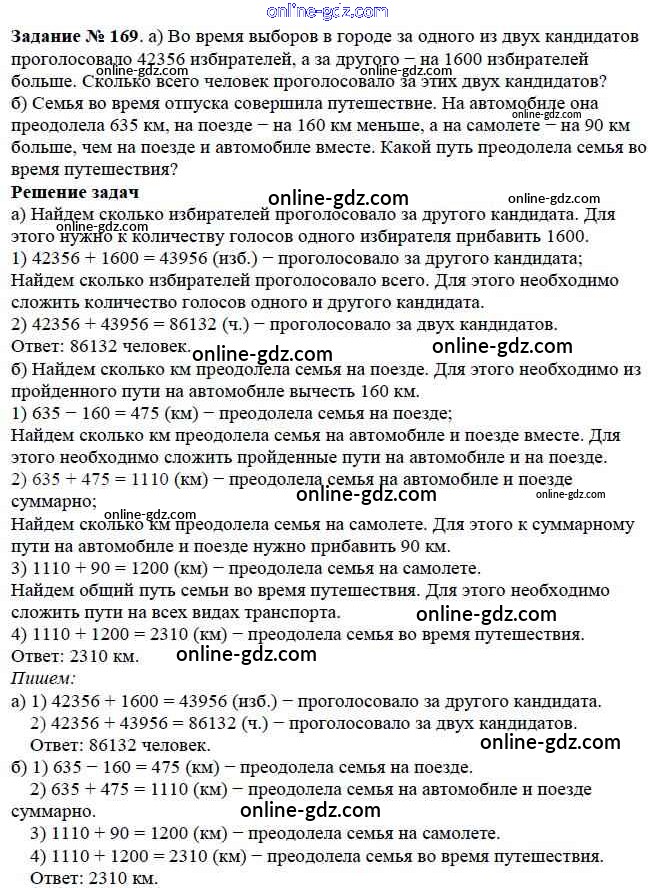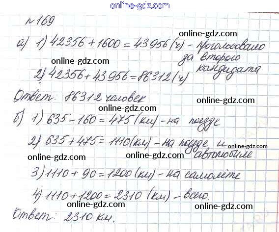 Готовые домашние задания по Математике за 5 класс Учебник Дорофеев, Шарыгин 2015 - 3.1. Сложение и вычитание Глава 3. Действия с натуральными числами 169