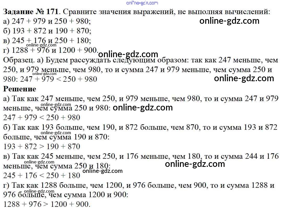 Готовые домашние задания по Математике за 5 класс Учебник Дорофеев, Шарыгин 2015 - 3.1. Сложение и вычитание Глава 3. Действия с натуральными числами 171