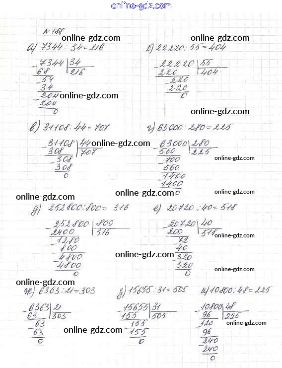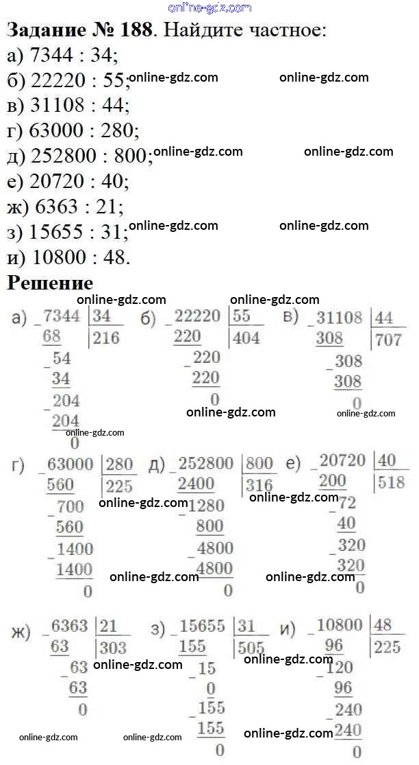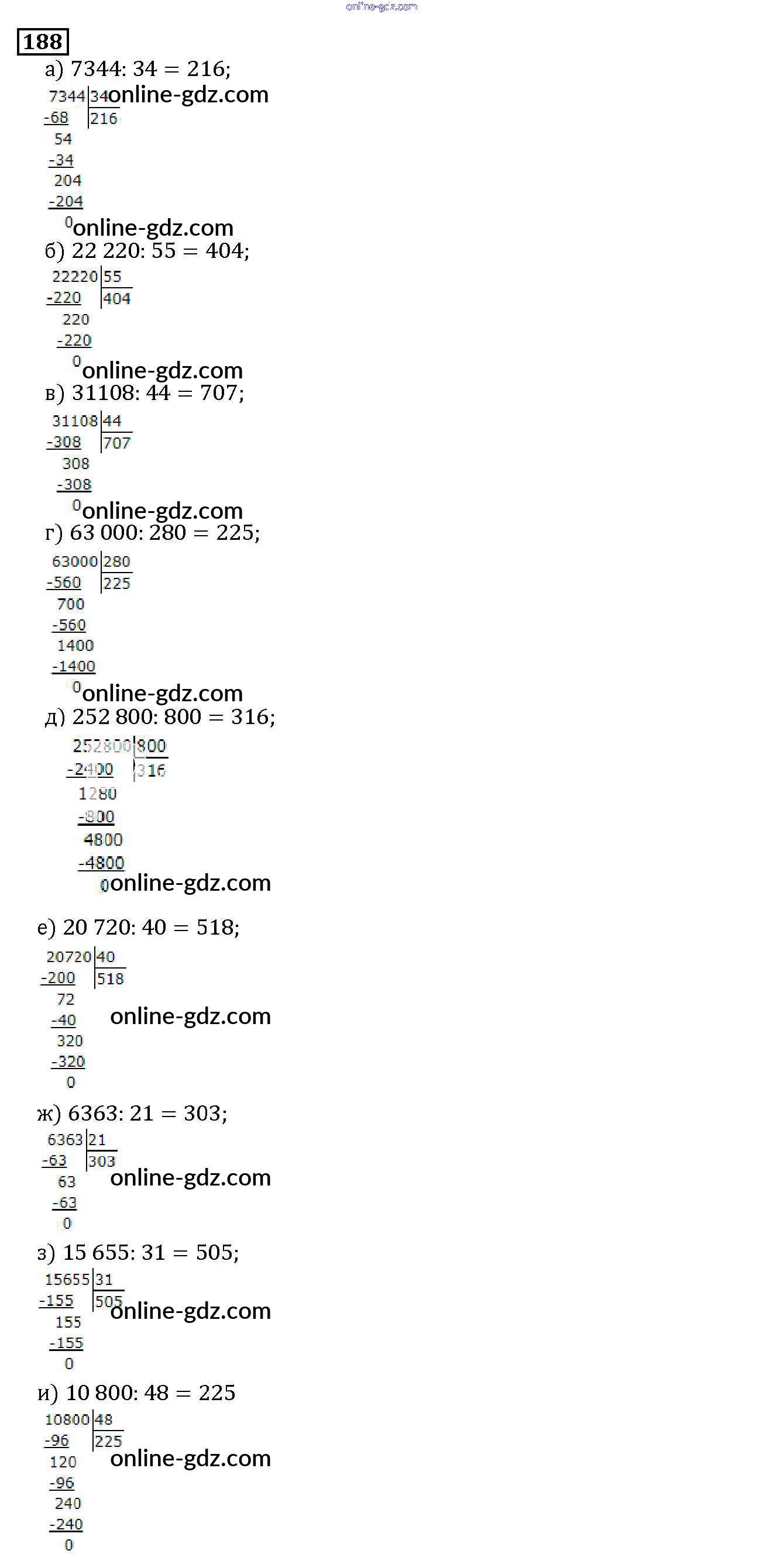 Готовые домашние задания по Математике за 5 класс Учебник Дорофеев, Шарыгин 2015 - 3.2. Умножение и деление Глава 3. Действия с натуральными числами 188