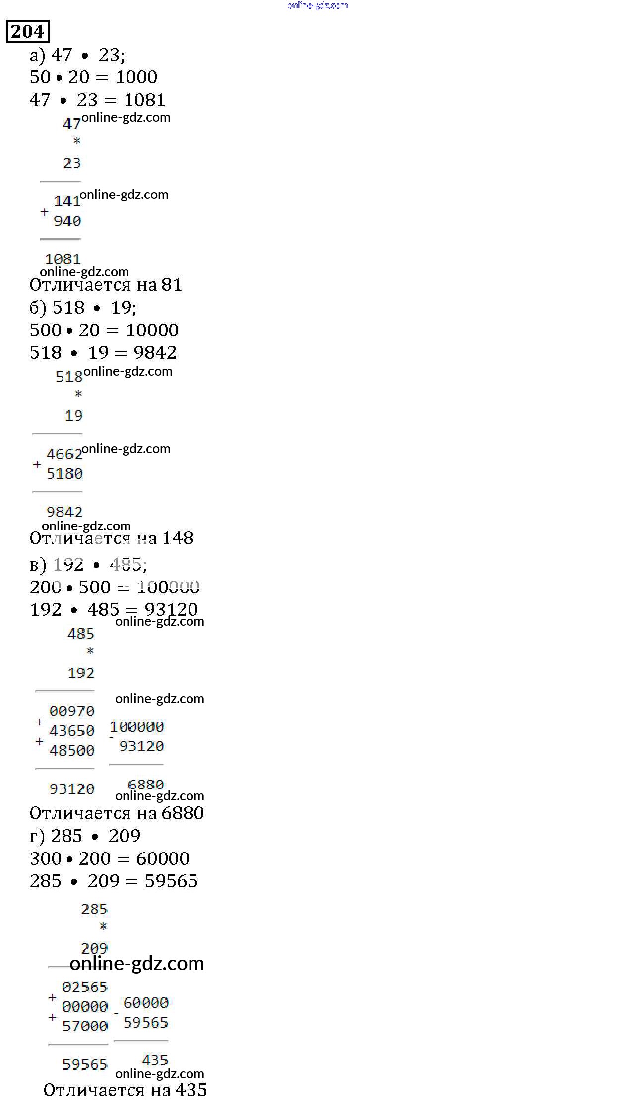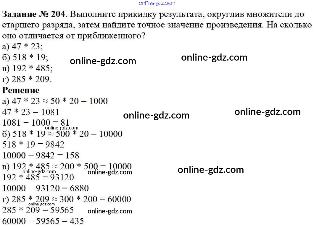 Готовые домашние задания по Математике за 5 класс Учебник Дорофеев, Шарыгин 2015 - 3.2. Умножение и деление Глава 3. Действия с натуральными числами 204