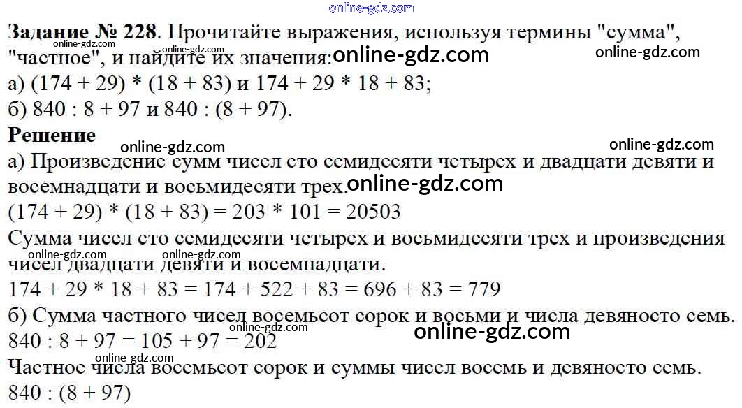Готовые домашние задания по Математике за 5 класс Учебник Дорофеев, Шарыгин 2015 - 3.3. Порядок действий в вычислениях Глава 3. Действия с натуральными числами 228