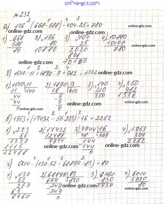 Готовые домашние задания по Математике за 5 класс Учебник Дорофеев, Шарыгин 2015 - 3.3. Порядок действий в вычислениях Глава 3. Действия с натуральными числами 232