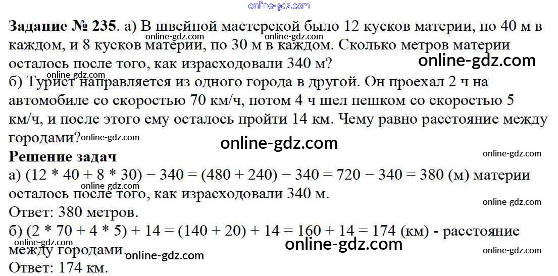 Готовые домашние задания по Математике за 5 класс Учебник Дорофеев, Шарыгин 2015 - 3.3. Порядок действий в вычислениях Глава 3. Действия с натуральными числами 235