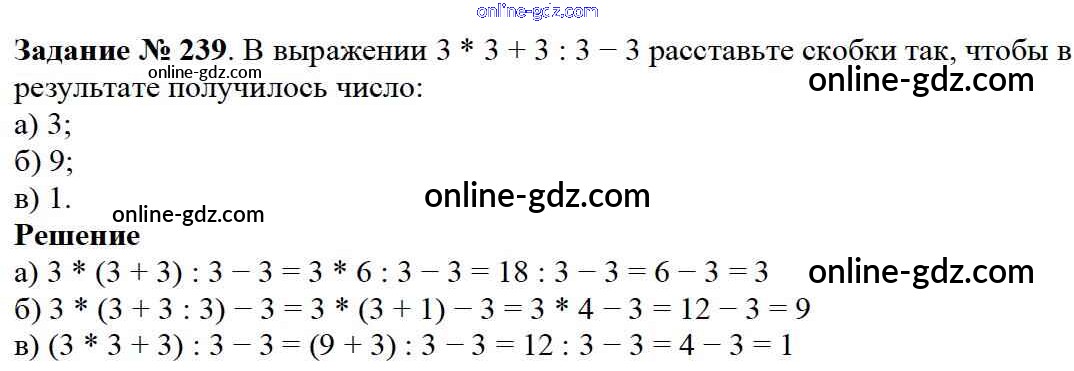 Готовые домашние задания по Математике за 5 класс Учебник Дорофеев, Шарыгин 2015 - 3.3. Порядок действий в вычислениях Глава 3. Действия с натуральными числами 239