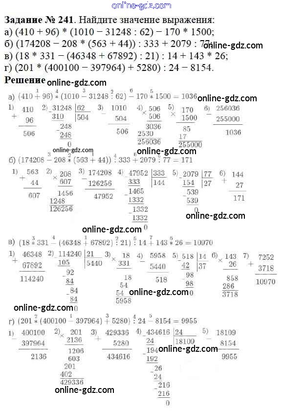 Готовые домашние задания по Математике за 5 класс Учебник Дорофеев, Шарыгин 2015 - 3.3. Порядок действий в вычислениях Глава 3. Действия с натуральными числами 241