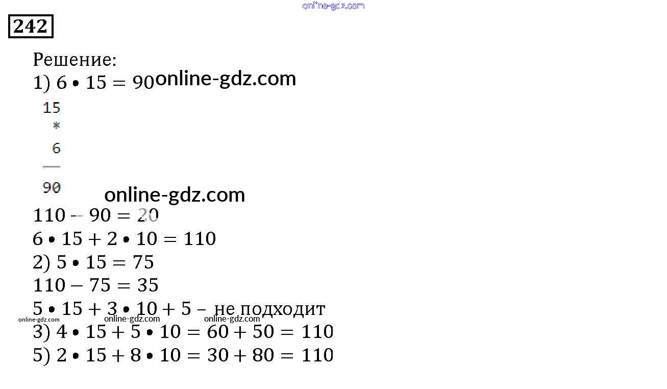 Готовые домашние задания по Математике за 5 класс Учебник Дорофеев, Шарыгин 2015 - 3.3. Порядок действий в вычислениях Глава 3. Действия с натуральными числами 242